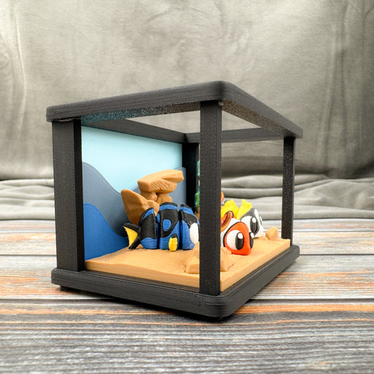 Fish Tank + 3 Fish 3D Printed Fidget Figure Diorama Set