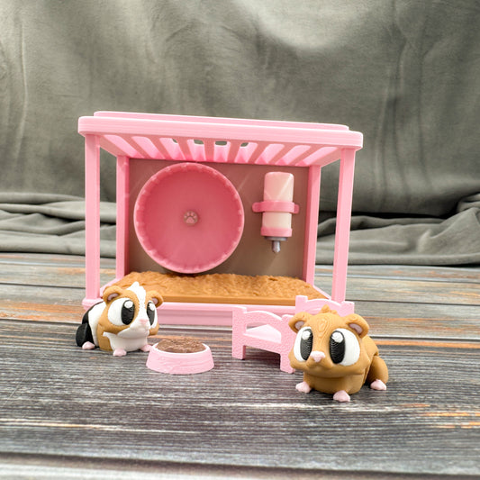 Guinea Pig Cage + 2 Guinea Pigs 3D Printed Fidget Figure Diorama Set