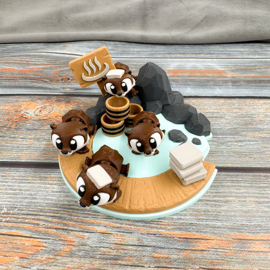 Otter Onsen + 4 Otters 3D Printed Fidget Figure Diorama Set