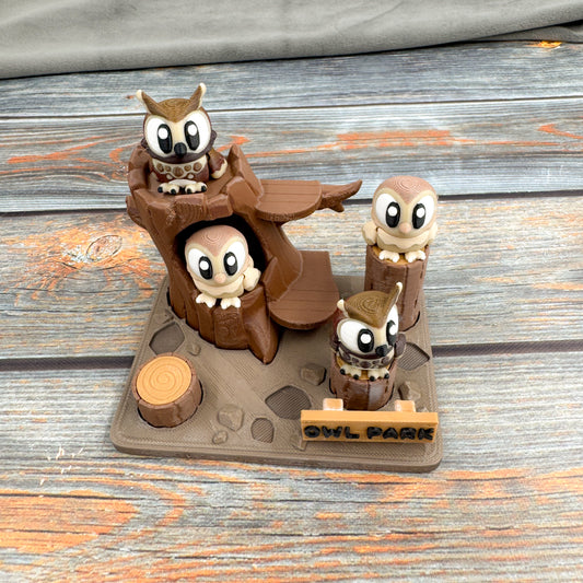 Owl Park + 4 Owls 3D Printed Fidget Figure Diorama Set