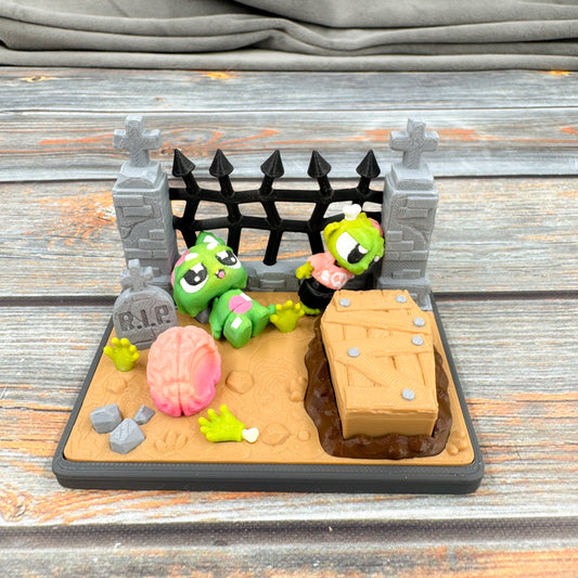 Zombie Graveyard + Zombie & Zombie Cat 3D Printed Fidget Figure Diorama Set