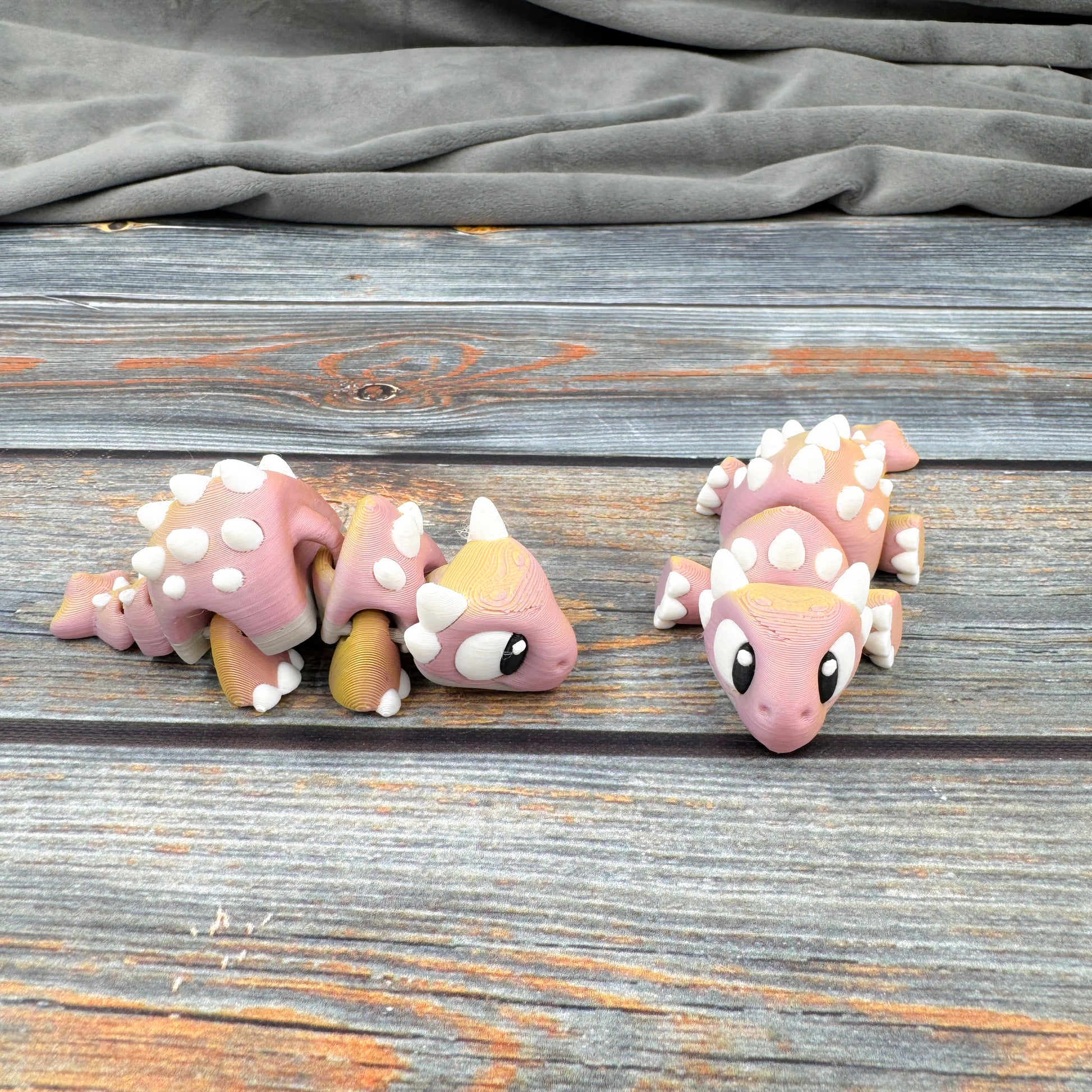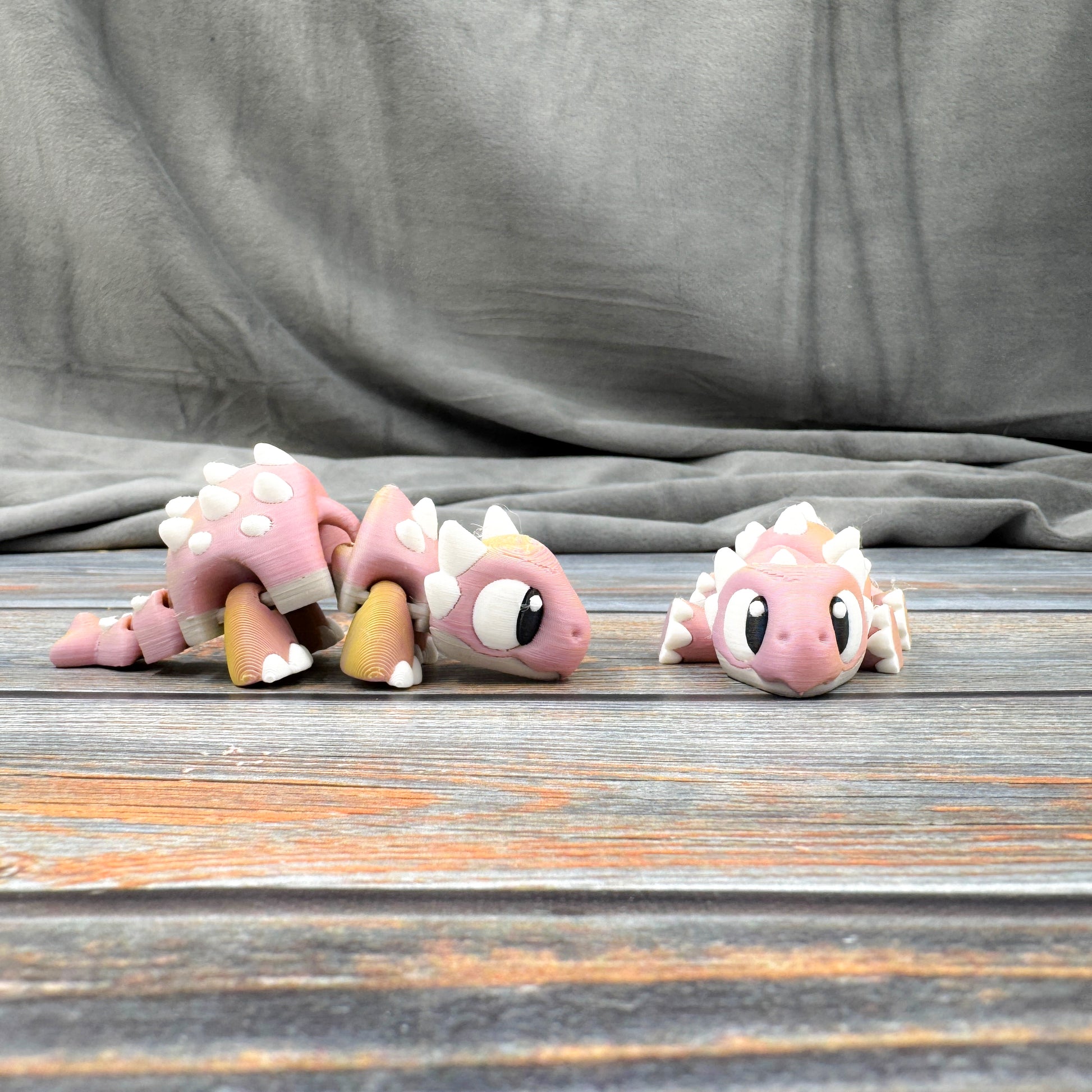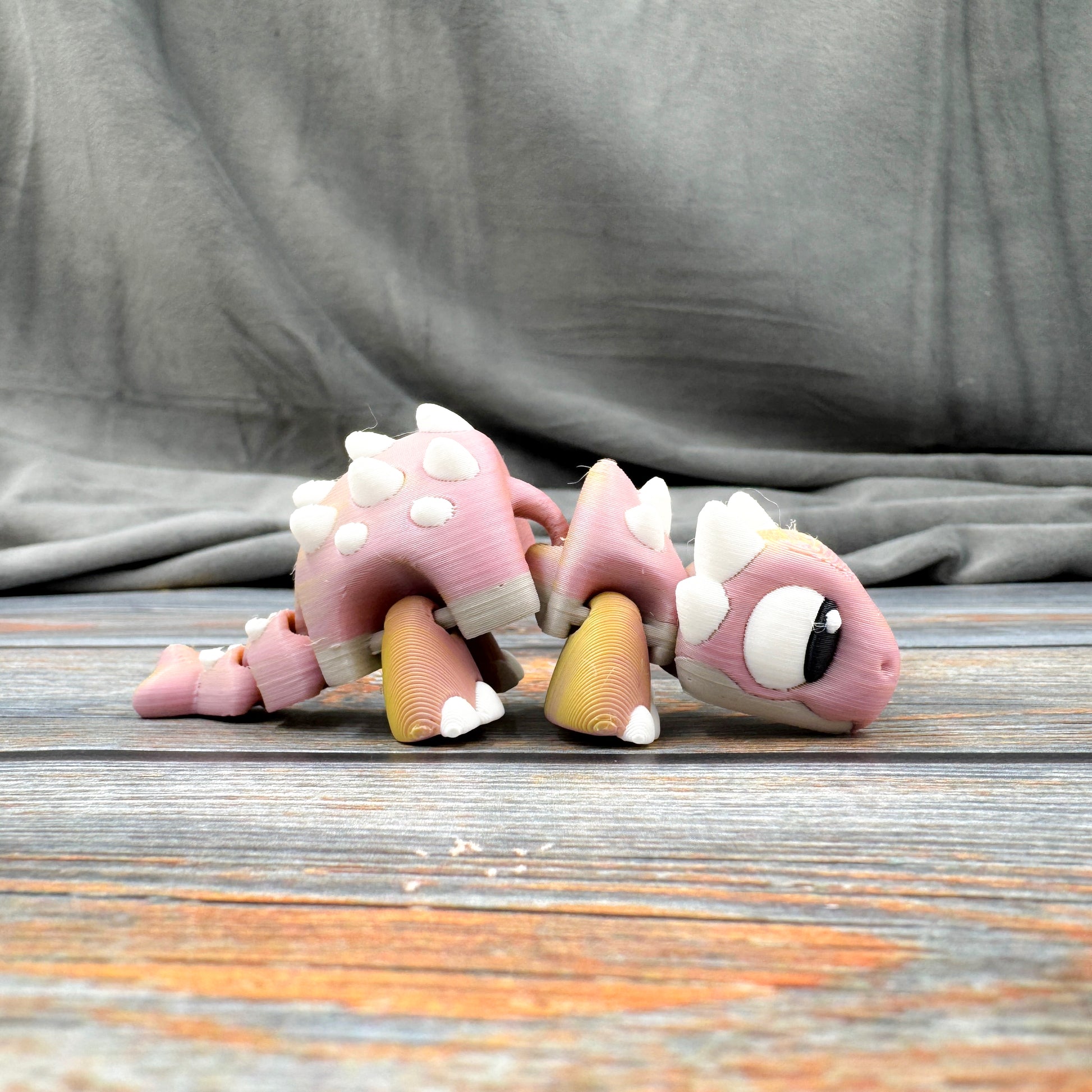 This Baby Ankylosaurus Articulated Fidget Figure is a unique and fun 3D printed toy that will bring hours of entertainment! With its moveable limbs and adorable design, this fidget figure is perfect for dinosaur enthusiasts of all ages. Handcrafted with care, this mini dinosaur is a great addition to any collection or a perfect gift for a loved one.