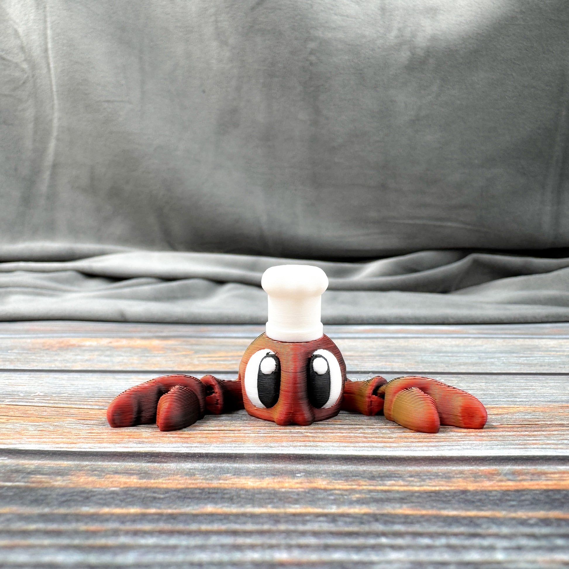 Lobster with Chef Hat Articulated 3D Printed Fidget Figure