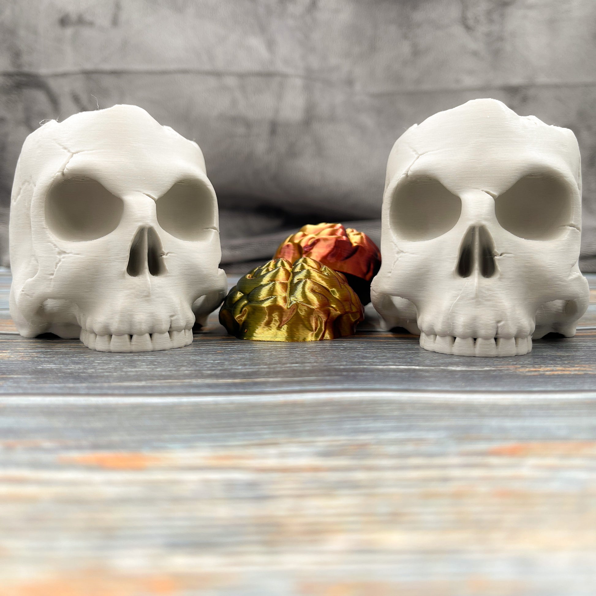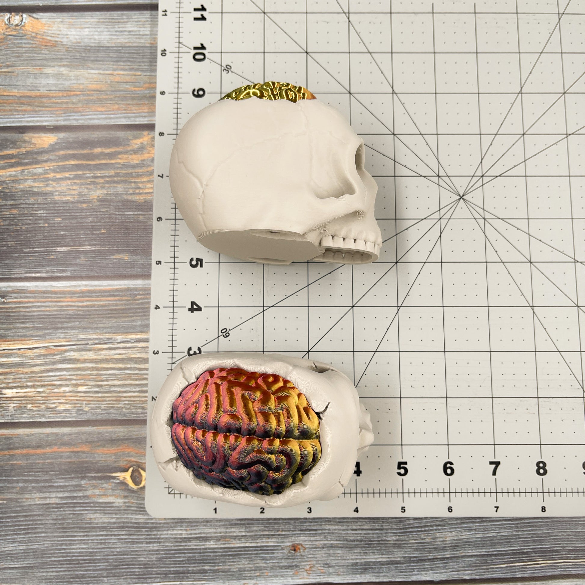 This 3D printed figure is more than just a novelty item. It's a testament to the blend of technology and handcrafted artistry, a unique piece that brings a sense of creativity and authenticity into your space. Whether you're a lover of unique home décor items, a collector of 3D printed artwork, or simply someone who appreciates innovative design, this Skull Storage Box with Brain Lid is a must-have addition to your collection. Each box is made to order, ensuring that your piece is truly one-of-a-kind.